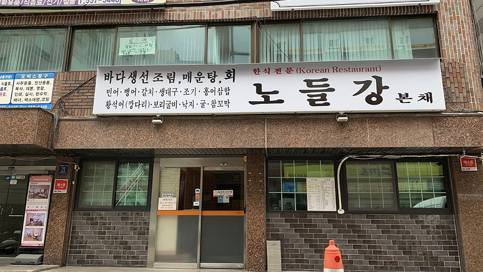 민어회 전문점인 노들강본채는 여름철 보양식 남도음식 전문점으로 논현동에서 유명하다. 메뉴는 민어탕, 홍어탕, 홍어회, 홍어찜, 수육, 말린우럭탕 등 다양한 요리를 맛볼 수 있다. 또, 민어회를 코스요리로 맛볼 수 있는 민어코스요리도 준비되어 있다. 이곳에서는 음식의 맛을 더하기 위해 조리 과정에 생수를 사용한다.