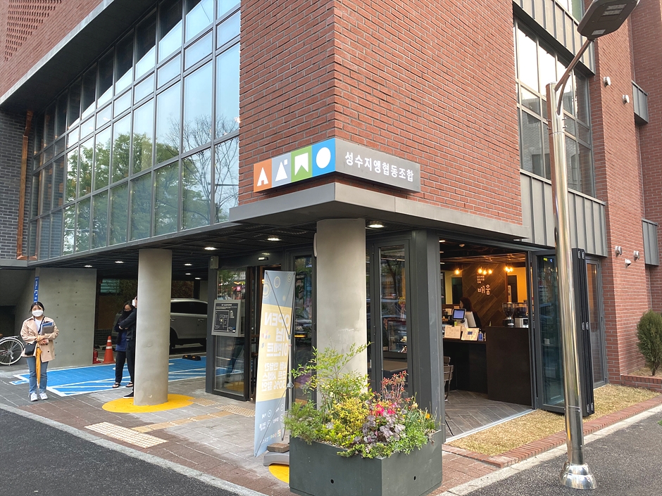 성수지앵협동조합은 수인분당선 서울숲역 5번 출구 인근 성수 나눔 공유센터 빌딩 1, 2층에 있다. 자가용 이용 시 주차할 수 있고 버스나 지하철 등 대중교통을 이용할 수 있다. 성수동 도시재생 사업의 일환으로 탄생한 이곳은 다채로운 색감을 활용한 인테리어 돋보이는 곳이다. 대표메뉴는 부드럽고 달달한 이탈리아식 커피인 샤케라또이다. 이 외에 에스프레소, 아메리카노, 카페라테, 바닐라라테, 카페모카, 아인슈페너 등이 있다. 카페 내부는 아늑하고 세련된 디자인으로, 편안한 분위기에서 휴식을 취하며 시간을 보낼 수 있는 곳이다.
